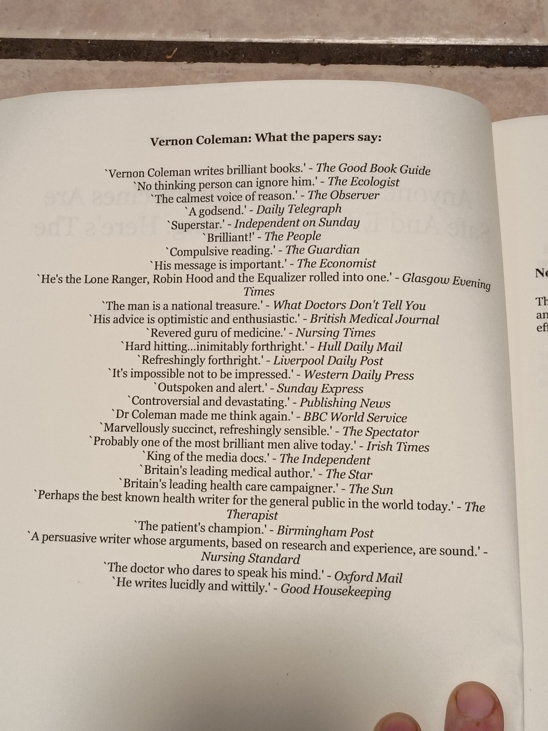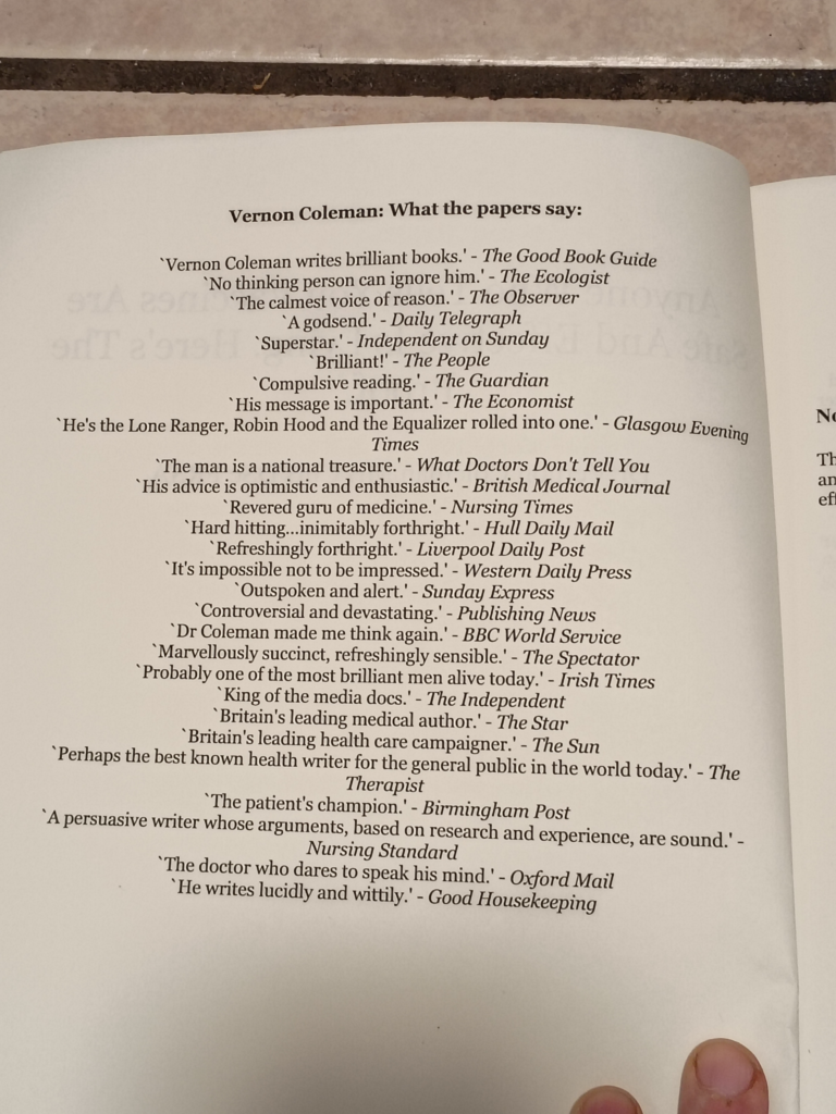 “ADVANTAGEOUS CHANGES TO SOCIETY HAPPEN ONLY THROUGH THE DETERMINED WORK OF UNREASONABLE MEN (AND WOMEN OF COURSE). GREAT THINGS HAPPEN ONLY WHEN ENOUGH UNREASONABLE WOMEN & MEN. CARE AND ARE BRAVE ENOUGH TO BE UNREASONABLE IN PUBLIC. ALL REAL PROGRESS IS MADE AS A RESULT OF OBSERVATION AND DEDUCTION BUT THESE SKILLS ARE NOT VALUED TODAY. JUST ABOUT ALL GREAT DISCOVERIES IN HISTORY HAVE BEEN MADE BY PEOPLE WHO WEREN’T RECOGNIZED BY THEIR PEERS BEFOE THEY MADE THEIR DISCOVERIES AND OFTEN WERE NOT RECOGNIZED BY THEIR PEERS FOR YEARS AFTERWARDS EITHER.” THE MOST LEGENDARY DOCTOR OF OUR DAY THEE DR. VERNON COLEMAN. NO HEALER HAD HIGHER MORALS.