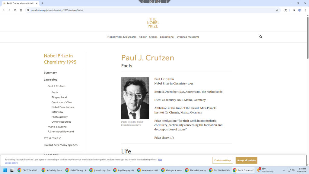 Nobel laureate Paul Crutzen, who won the 1995 Nobel Prize in Chemistry for ozone research, notably advocated for researching solar geoengineering. In 2006, he proposed injecting sulfur dioxide into the stratosphere to cool the planet, arguing that, as outlined in this Lindau Nobel Laureate Meetings article, it was a necessary “Plan B” as emissions reductions stalled. AGU PublicationsAGU Publications +2